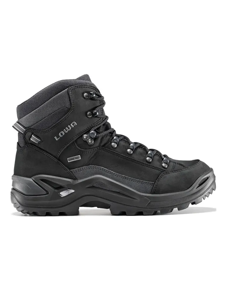 Lowa Renegade GTX Mid är ett par tekniska och bekväma vandringskängor med genomtänkta detaljer tillverkad med ovandel i nubuck och mocka samt GORE-TEX som ger ett vattentätt skydd och god andningsförmåga. Dessa kängor har ett medelhögt skaft och Monowrap konstruktion som stabiliserar och skyddar utsatta områden samt fler detaljer som slitstark snörning, dubbel densitets PU mellansula, bekväm innersula och Vibram EVO yttersula av gummi