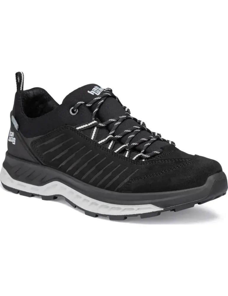 Men´s Blueridge Low Es är en multifunktionell lätt vandringskänga från Hanwag. Tillverkad i slitstarkt Perwanger-läder och "Global Recycling Standard" 100 % återvunnet tyg med PFC-fritt vattentätt membran. Mellansulan har en tredimensionell struktur gjord av kompakt och expanderad polyuretan som omsluter foten för all-round komfort. Den upphöjda kanten på sulan av stabiliserande PU ger bättre stöd på alla sidor och vid hälen. Termoformat PU-skum i HANWAG 3D-BreathFit-plösen kompenserar för den anatomiskt asymmetriska formen på foten med asymmetrisk stoppning och anpassar sig efter dina fötters individuella form. Halkfri "Terragrip" yttersula med fyra millimeter djup slitbana för en mängd olika terränger.